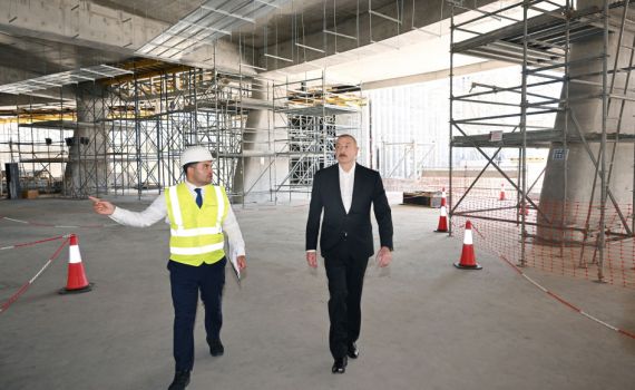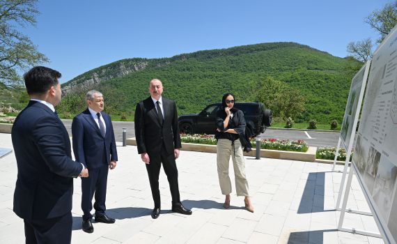 The President Ilham Aliyev, and First Lady Mehriban Aliyeva visited the Shusha Mosque to review the ongoing construction work.